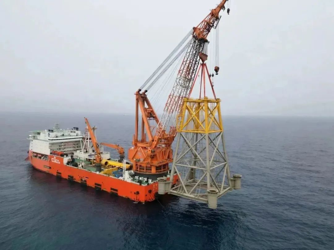 明陽青洲四項目場址涉海面積約73.69平方公里,水深范圍41米至46米,中心離岸距離約75公里,項目規劃裝機容量為500兆瓦。作為青洲四項目升壓站的核心根基,此次完工的導管架主體高66.1米、重2920噸,基礎樁直徑4.3米、長94至97米,單根最重570噸。水下沉樁基礎施工采用直徑4.3米、長度40.5米的送樁器,打破了水下施工液壓打樁錘的限制,拓寬了現有施工裝備的限制。