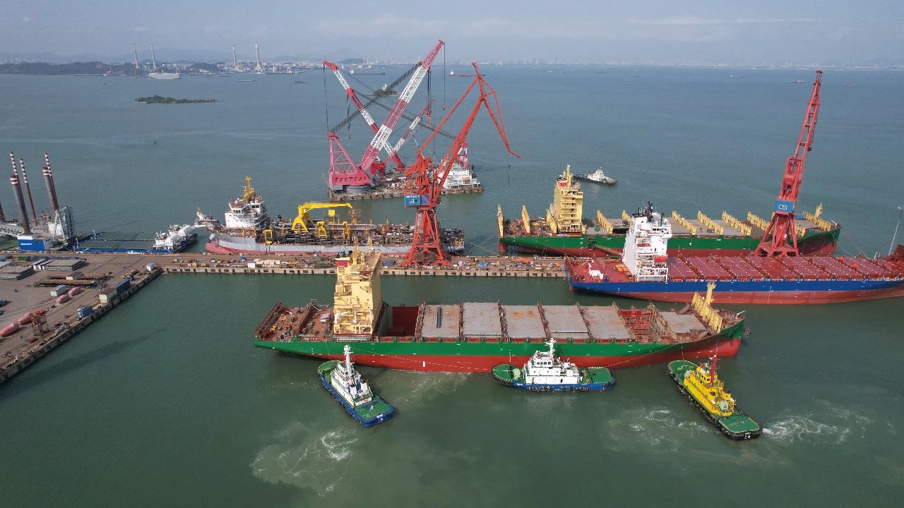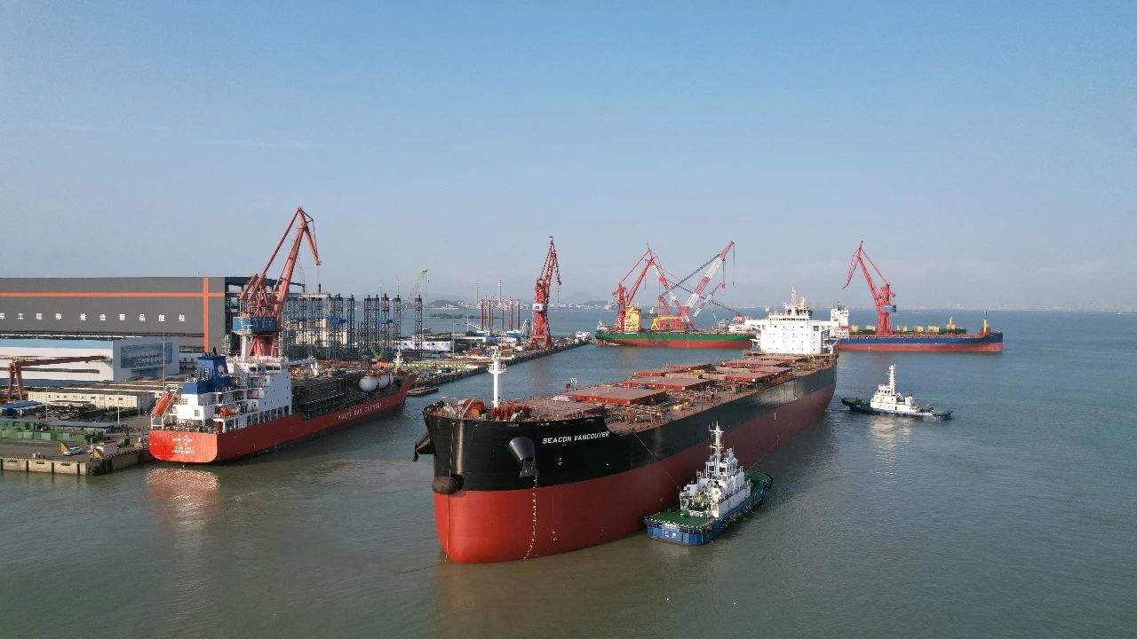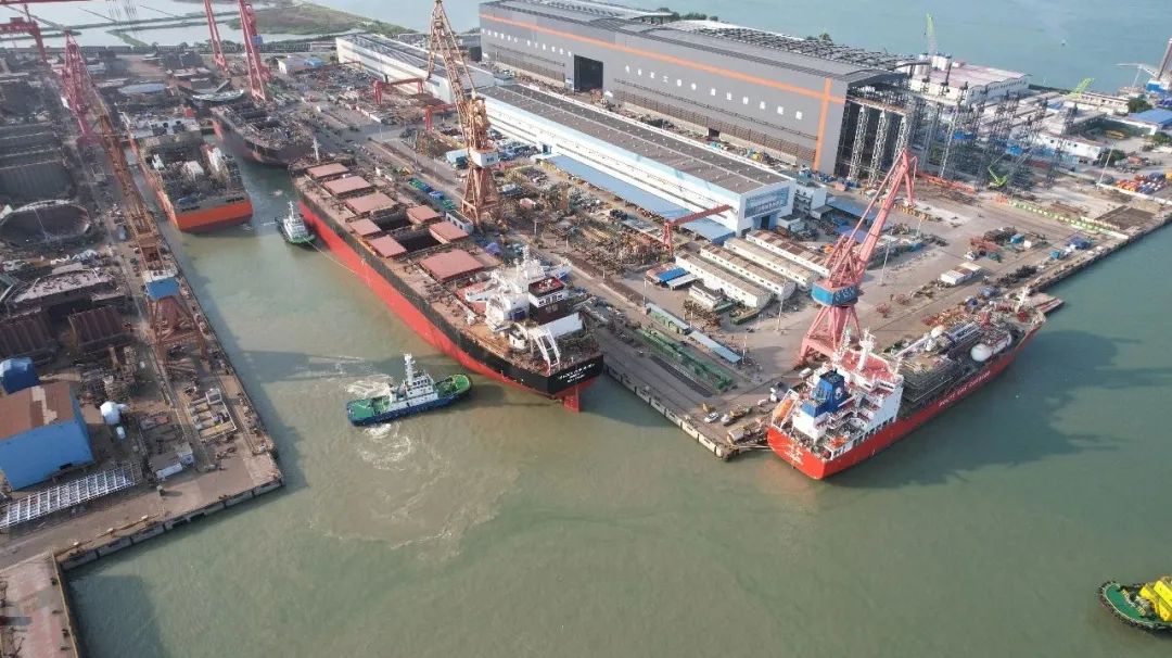 4月28日,中國船舶集團旗下黃埔文沖船海事業部南沙廠區船塢實現了H3096、H2433兩船出塢,H3097半船起浮。