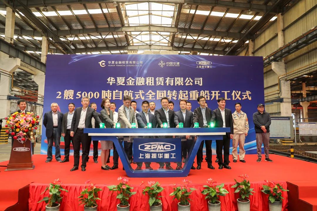 5月10日,振華重工為華夏金租建造的2艘5000噸自航式全回轉起重船項目在南通振華重裝舉行了開工儀式。開工節點提前完成標志著2艘5000噸自航式全回轉起重船已經全面進入了建造階段,也為項目圓滿成功打下了堅實的基礎。