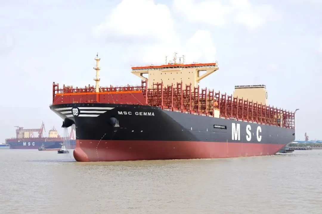 5月22日,中國船舶集團有限公司旗下滬東中華造船(集團)有限公司聯合中國船舶工業貿易有限公司,為工銀金融租賃有限責任公司和瑞士地中海航運公司(MSC)建造的全球最大24000TEU級超大型集裝箱船系列3號船“地中海 吉瑪” (MSC GEMMA)號,在中船長興造船基地命名交付。這不僅是滬東中華在短短75天時間里完工交付的第3艘同系列船,進一步穩固了其世界超大型集裝箱船建造領域的領軍地位,也成就了MSC成為全球第一家運力突破500萬TEU大關的集裝箱航運公司。