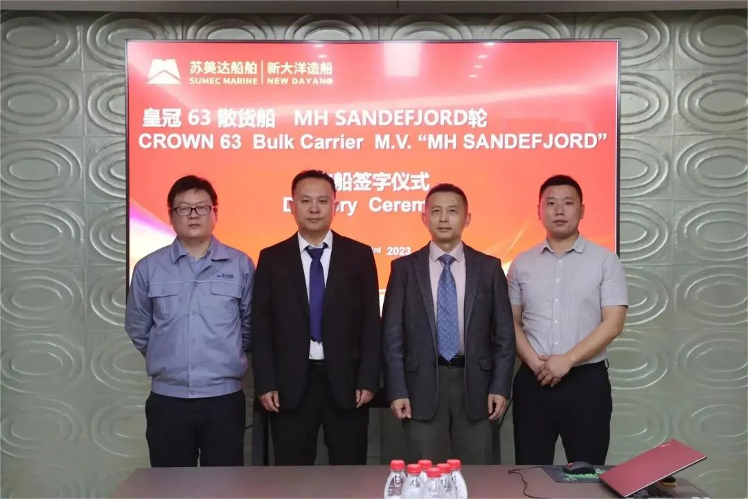 5月23日下午,蘇美達船舶公司新大洋皇冠63散貨船DY4095順利簽字交付,此舉標志著船舶公司新大洋建造的CROWN63 2.0版本順利收官。