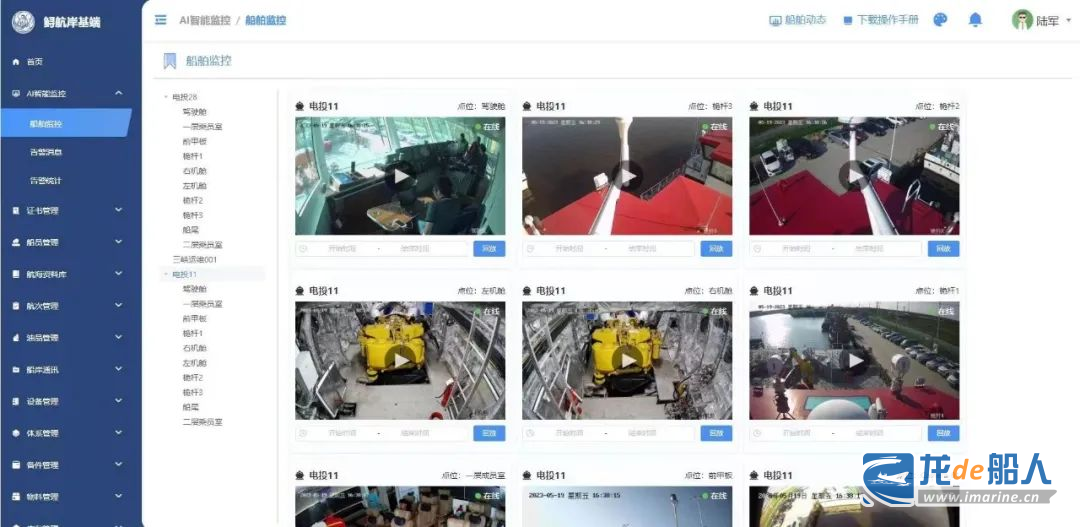 該AI智能監控系統是基于船舶值守違章實時智能偵測云平臺的監控系統,它以船舶違章行為及人的不安全行為為重點,結合區域、狀態、行為三個維度,通過對駕駛艙、甲板、機艙及其他重點區域進行監控智能分析,實現全天候實時監控,主動安全預警,有效規范船員行為,實現多項不安全行為的偵測。