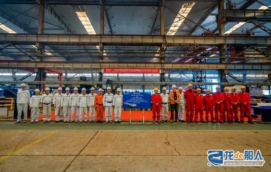 6月16日,威海金陵舉行第四艘7000車雙燃料汽車運輸船開工儀式。