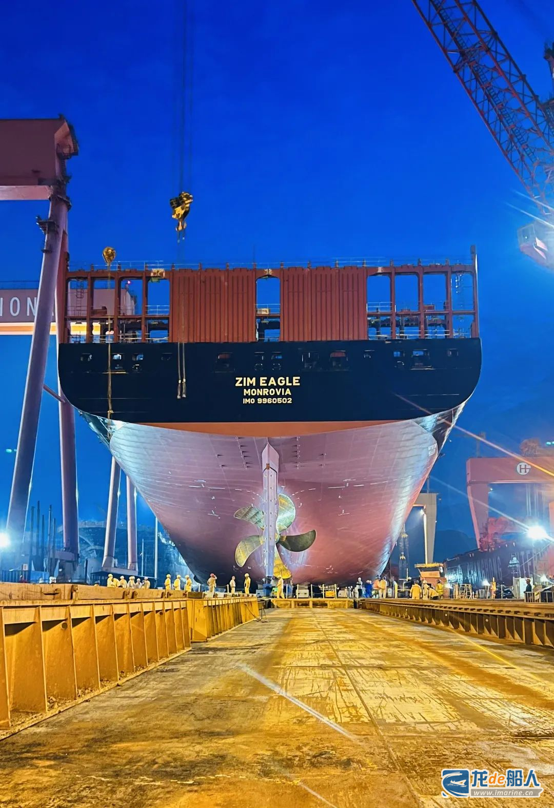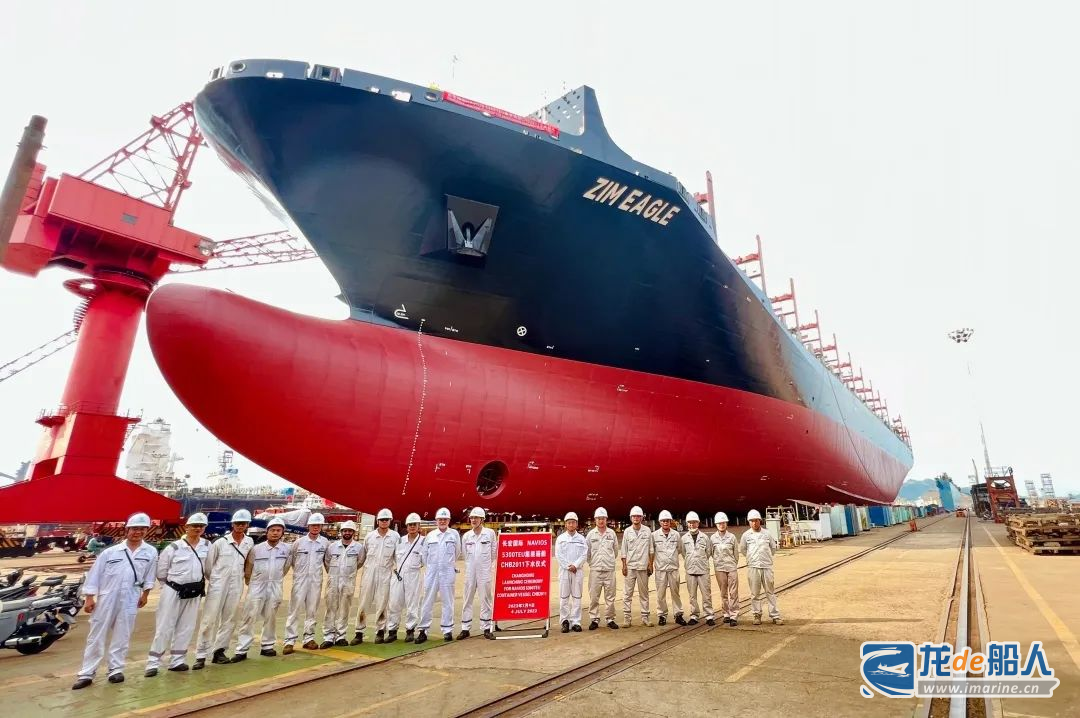 7月4日晚間,舟山長宏國際為希臘船東NAVIOS MARITIME PARTNERS L. P.承建的第二艘5300TEU集裝箱船CHB2011接駁浮船塢,標志著該船順利下水。