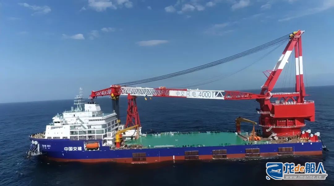 4000噸全回轉起重船總長195米,型寬46.9米,型深16米。船艉設置一臺固定尾吊4000噸/全回轉吊3000噸起重能力的大型海洋工程起重機;具有DP2級動力定位功能,配備8點錨泊定位系統。主要用于15MW及以上機組單樁、導管架等多種基礎施工。同時單船便可完成港口裝載、海上運輸、吊裝及打樁等主要工序,可延長深遠海風電場施工氣象窗口期,有效降低工程建設成本。船舶設計時充分考慮一些新技術和智能化應用,在節能效果、公共安全標準等方面處于國內領先地位。