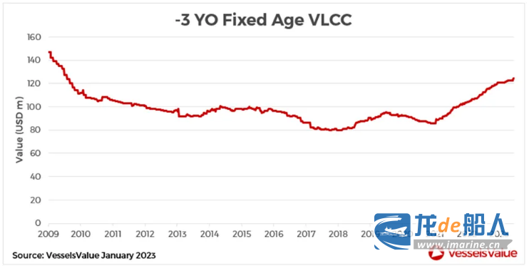 本月初,Dynacom Tankers確定了兩艘VLCC的訂單,將由新時代造船(New Times Shipbuilding )建造,并計劃在2026年交付,每艘造價為1.15億美元,VV 估值為1.1287億美元。這是今年的首個VLCC新造訂單,而在此之前的一批訂單則成交于2022年8月。