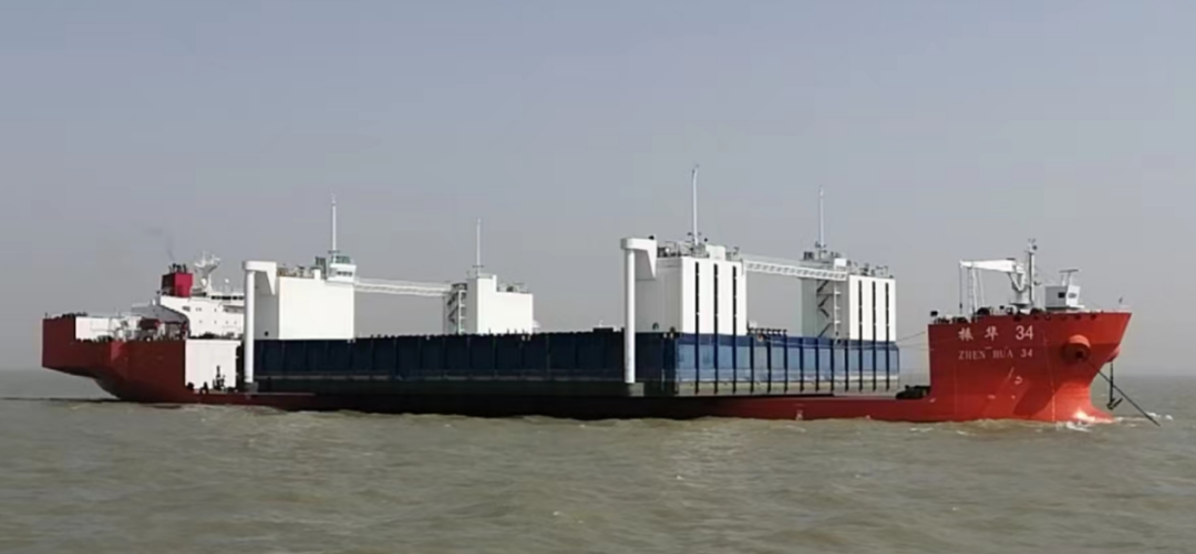4月16日,“振華34”輪在寶北錨地緩緩上浮,隨著船甲板面露出水面,下水駁座實“振華34”輪,順利完成裝載任務。