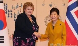 據韓聯社4月15日報道,韓國總統樸槿惠15日在總統府青瓦臺會見到訪的挪威首相埃爾娜·索爾貝格,雙方就兩國在造船與海洋成套設備領域、碳排放問題...