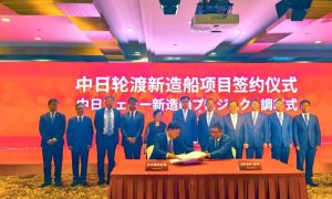 8月26日,招商局金陵船舶(威海)有限公司與中日國際輪渡有限公司在上海舉行了“192客位中日航線客滾船——鑒真號”新造船項目簽約儀式。簽約儀...