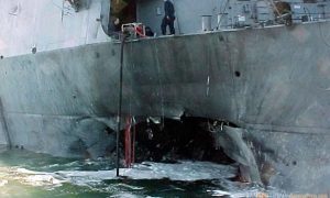 資料圖:2000年被基地組織襲擊的美軍科爾號驅逐艦 外媒稱,一名在英國最知名海軍院校接受過訓練的海軍軍官逃往敘利亞加入了“伊斯蘭國”。 據英...