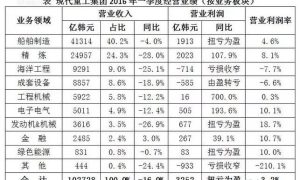 現代重工集團4月26日發布2016年一季度經營業績,實現營業收入10.3萬億韓元(約合90.0億美元),同比下降16.0%;營業利潤3252...