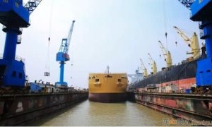 4月28日,滬東中華38000噸化學品首制船進華潤大東塢內涂裝。 根據計算,該船進塢配載狀態達到21000噸,遠高于同等大小的其他船舶,進塢...