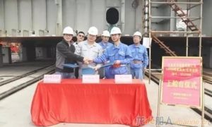 4月20日下午,通寶船舶首制的不銹鋼化學品船--2250DWT雙相不銹鋼化學品船(船體號:TB200001)正式上船臺鋪龍骨,船東方、投資方...