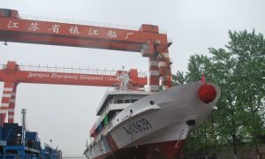 4月26日上午,江蘇鎮江船廠為江蘇海事局建造的批量海巡船中的第二艘船順利下水。