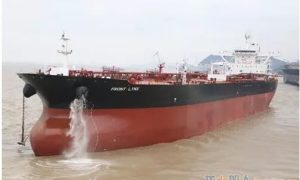 3月11日晚,舟山中遠船務為FRONT FLEET Ⅱ公司建造的第二艘11.1萬噸阿芙拉型原油/成品油輪“FRONT LYNX”簽字交付。船...
