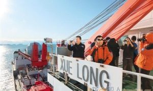 圖為“雪龍”號回到普里茲灣。 2月27日,中國“雪龍”號極地科考船完成環南極大陸航行回到中山站附近的普里茲灣。這是“雪龍”號第二次環南極大陸...