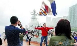昨日傍晚,深圳明思克航母世界景區,游客在航母上拍照留念。這是明思克航母在深圳最后一天面對游客開放。今天開始明思克航母將閉門歇業并拖往船廠檢修...