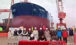 本帖最后由 龍船客服 于 2016-1-21 09:24 編輯 1月20日上午,金海重工第4艘32萬噸原油輪J0211船在江南山基地7#船塢...