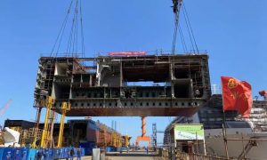 4月1日,隨著GB101分段吊裝到位,威海金陵為意大利Grimaldi集團旗下的Finnlines Plc公司建造的首艘高端客滾船(W027...