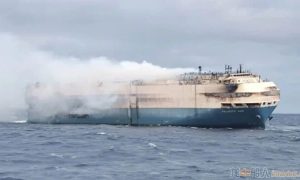 據路透社21日報道,一艘載有數千輛豪華轎車的貨船在葡萄牙亞速爾群島附近海域被大火吞噬,如今一名港口官員表示,目前大火已經減弱,原因可能是船上...