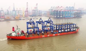 2月11日上午,“振華32”輪裝載著海口秀英港3臺輕型岸橋緩緩駛離振華重工長興分公司碼頭,前往用戶碼頭。 海口港岸橋項目共5臺機,應用戶要求...