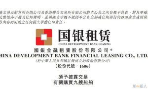 12月6日晚間,國銀租賃發布公告,購買九艘油化船,代價為1.72億美元(約合10.95億元人民幣)。 12月6日,國銀租賃9家全資特殊目的公...