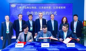 11月6日,在第四屆中國國際進口博覽會上,上海中遠海運物流有限公司與江蘇省對外經貿股份有限公司(簡稱江蘇省外貿)、江蘇省國際貨運班列有限公司...