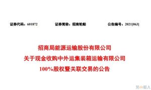 招商輪船10月29日晚間發布公告稱,擬以現金支付方式收購中國經貿船務有限公司持有的中外運集裝箱運輸有限公司(中外運集運)100%股權。 公告...