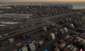 彭博社消息,美國政府采取行動,處理美國港口塞船僵局。周三拍攝的照片顯示,加利福尼亞州洛杉磯港的集裝箱積壓在港口大面積的地方。 美國總統拜登宣...