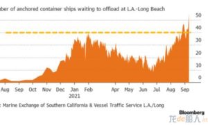 等待進入美國最大跨太平洋貿易門戶的集裝箱船只數量激增,平均等待時間超過8天。 據監測圣佩德羅灣海上交通的官員稱,截至周五晚些時候,有55艘船...