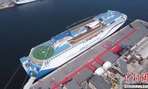 圖為吉龍島輪。(無人機照片) 楊毅 攝 中國客滾船中航速最快的現代化節能環保型大型客滾船——吉龍島輪,2日在遼寧大連舉行首航儀式,正式投入到...