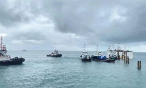 8月22日,“振華34”輪在幾內亞科納克里錨地成功浮卸7艘工程船。