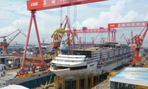 8月10日,中國首制大型郵輪H1508船首個大曲面大線型帶多層超寬造型板船艏生活樓T1b薄板總段完成搭載吊裝工作。標志著船艏薄板總段在建造管...