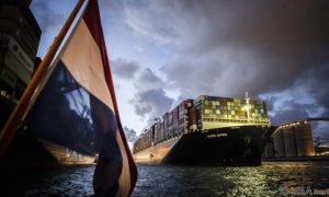 在蘇伊士運河被扣4個多月后,超大型集裝箱船 “長賜”號駛入鹿特丹港。集裝箱碼頭負責人納格特哈爾(Hans Nagtegaal)對法新社說,這...