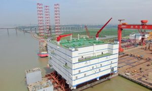 7月8日,振華重工建造的世界最大、亞洲首座海上換流站——三峽如東海上換流站在南通振華重裝舉行發運儀式。 振華重工黨委書記、董事長、總裁劉成云...