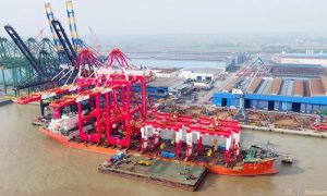 5月28日清晨,振華重工為上海洋山四期自動化碼頭制造的第四批2臺自動化岸橋及第五批6臺自動化軌道吊發運。上海洋山四期自動化碼頭共向振華重工采...