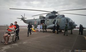 17日,印度一艘駁船發生傾覆事故,獲救人員從印度海軍艦艇中走出。 當地時間17日下午,印度孟買附近海域一艘駁船受熱帶氣旋“陶特”影響發生傾覆...