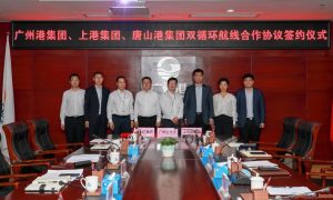 4月25日,上港集團、廣州港集團、唐山港集團在廣州港港口中心簽署《雙循環航線合作協議》,打造沿海港口合作新模式。 上港集團副總裁王海建、廣州...