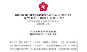 4月23日,東方海外(國際)有限公司公布了一季度財務報告。 截至3月31日,東方海外在今年一季度總貨運量較去年同期上漲23.8%,總收益增加...