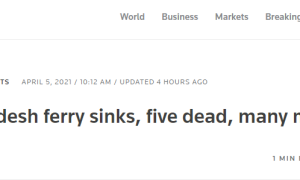 據路透社報道,孟加拉國官員表示,4月4日,該國一艘載有約50名乘客的渡輪與一艘貨輪發生相撞,造成至少5人死亡,另有多人失蹤。 路透社報道截圖...