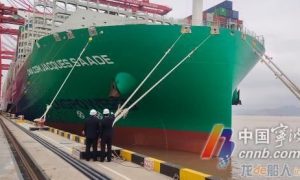 據中國寧波網消息,3月28日上午,全球最大LNG動力集裝箱船“達飛雅克薩德”輪在寧波舟山港梅山港區國際集裝箱碼頭7號泊位完成13165TEU...