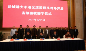 3月4日,由江蘇省商務廳、南京海關、江蘇邊檢總站、連云港海事局等查驗單位負責人組成的驗收組,對鹽城港大豐港區滾裝碼頭對外開放進行省級驗收。副...
