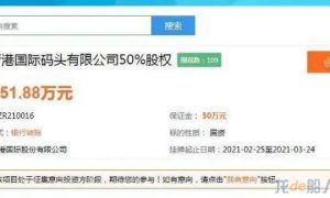 青島港國際股份有限公司正在掛牌轉讓濱州港青港國際碼頭有限公司50%股權,轉讓底價為751.88萬元,轉讓時間為2021年2月25日至2021...