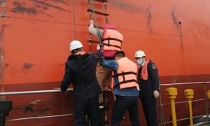據舟山海事局消息,2月25日11時許,舟山海事局指揮中心接報:航行至鼠浪湖東側水域的空載油船“恒宇6”輪上,一名水手眼睛受傷,急需救助。 接...