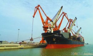 2月1日上午,靠泊在鹽城港濱海港區通用碼頭、滿載著從印度尼西亞進口的兩萬噸鎳鐵的利比里亞籍貨輪正在緊張有序地進行卸貨作業。這是鹽城港濱海港區...