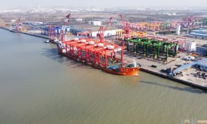 近日,天津港太平洋國際公司成功接卸23000標準箱超大型LNG動力集裝箱船“達飛香榭麗舍”輪。 該輪的超大LNG燃料艙高度相當于一幢26層建...