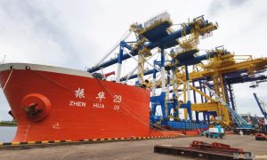 “振華29”輪2020年年末先后完成馬來西亞關丹港、馬來西亞柔佛港、印度孟買港共5臺岸橋的卸船任務。 “振華29”輪靠泊馬來西亞關丹港 馬來...