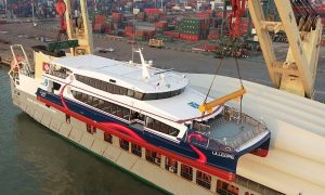 2021年1月14日,英輝南方296客位——LILLEORE(ASA083)高速客船在廣東東莞Berth港吊運上“MV Anne Sofie...