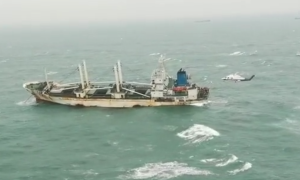 11月7日12:39時,一艘巴拿馬籍雜貨船“大豐海運”輪在東引島以西約2海里水域發現船舶貨艙和機艙有進水情況,船舶左傾約20°,船上共23人...