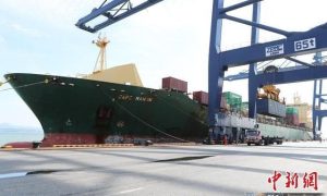 圖為“凱恒”輪12日順利靠泊大連港集裝箱碼頭 隨著長榮國際船務“凱恒”輪12日順利靠泊大連港集裝箱碼頭,標志著長榮KTP東南亞線正式運營。至...